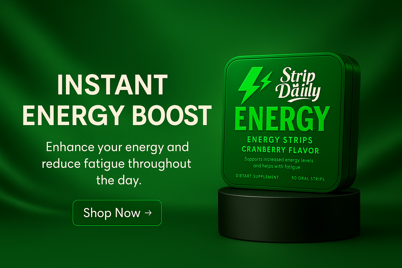 SHOP NOWFuel your day with our fast-acting Strip Daily Energy Strips! Designed to boost focus, stamina, and alertness, each strip delivers a powerful burst of natural energy anytime, anywhere.