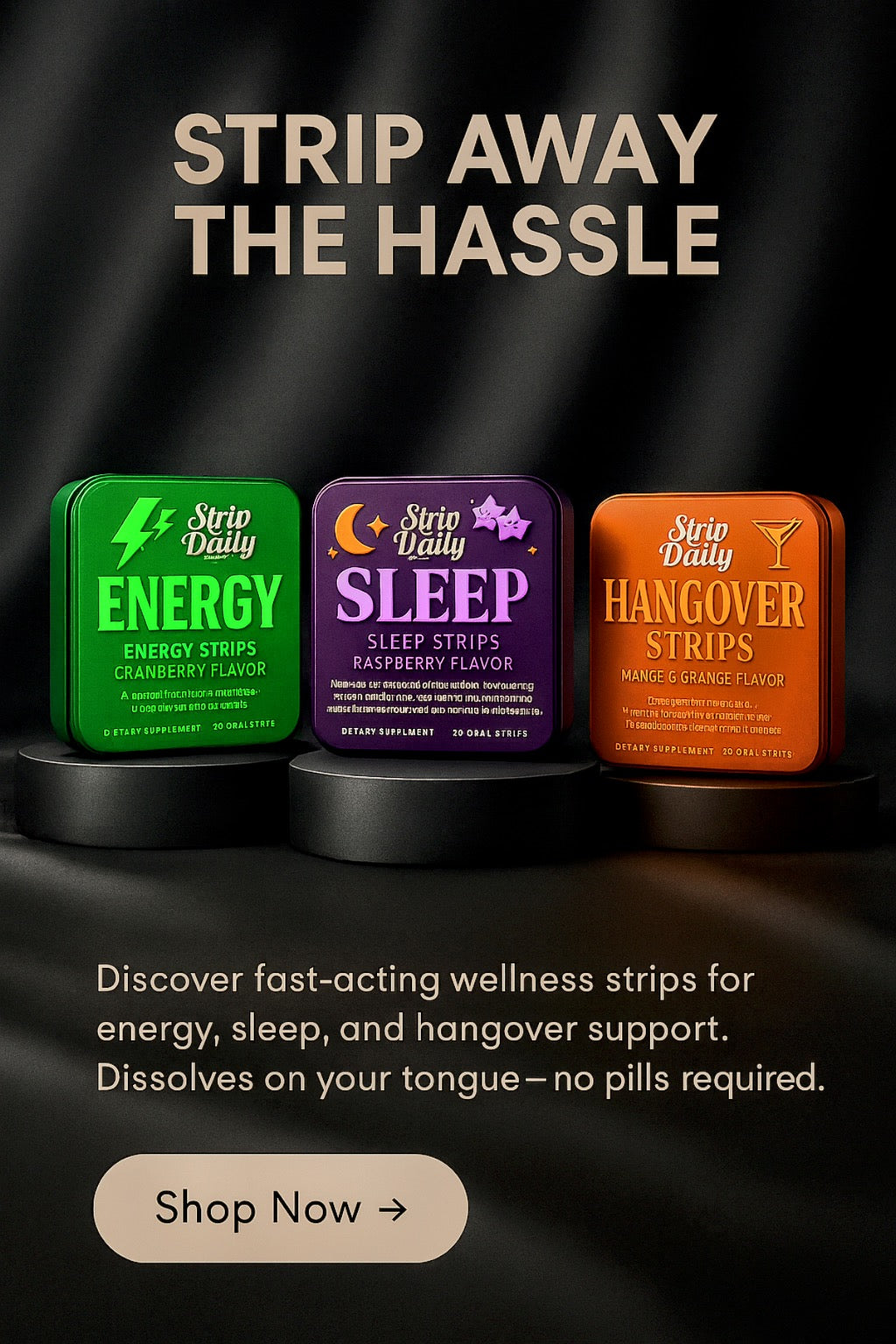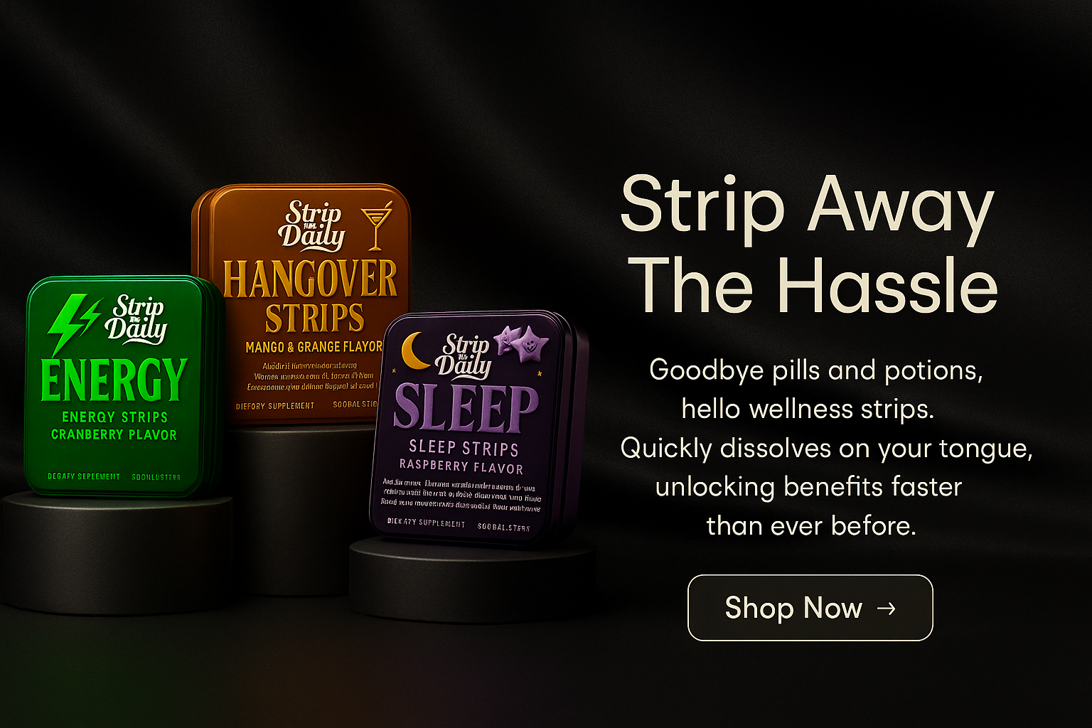 Introducing Stripdaily™: The next evolution in natural performance. We've replaced the hassle of pills and powders with 30 individually wrapped, great-tasting oral strips designed for seamless, mess-free wellness. Formulated for maximum absorption and incredible speed, our revolutionary strips utilize the power of sublingual delivery to work better, faster, and effortlessly integrate into your busy life. Wellness has never been this fast or this easy.