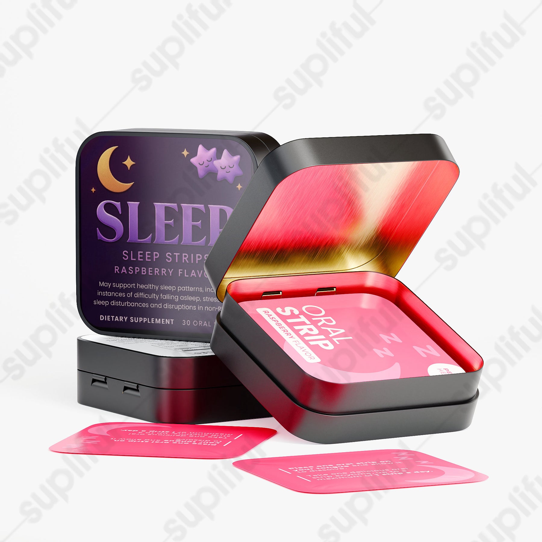 Ingredients: Pullulan, Valerian root extract, Lavender extract, Chamomile extract, Hibiscus extract, Cellulose, Raspberry Flavor, Malic acid, Xylitol, Lecithin, Erythritol, Sorbitol Syrup, Medium Chain Triglycerides, Steviol Glycosides, Melatonin